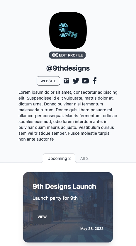 Your Move profile allows you to have a public home to display all of your active events. You can display a single location if your events are housed at a single location. You can also display links to social media, your website, and more.