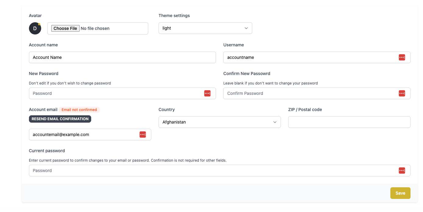 2. Make changes to your Name, Email, and other account settings as needed.